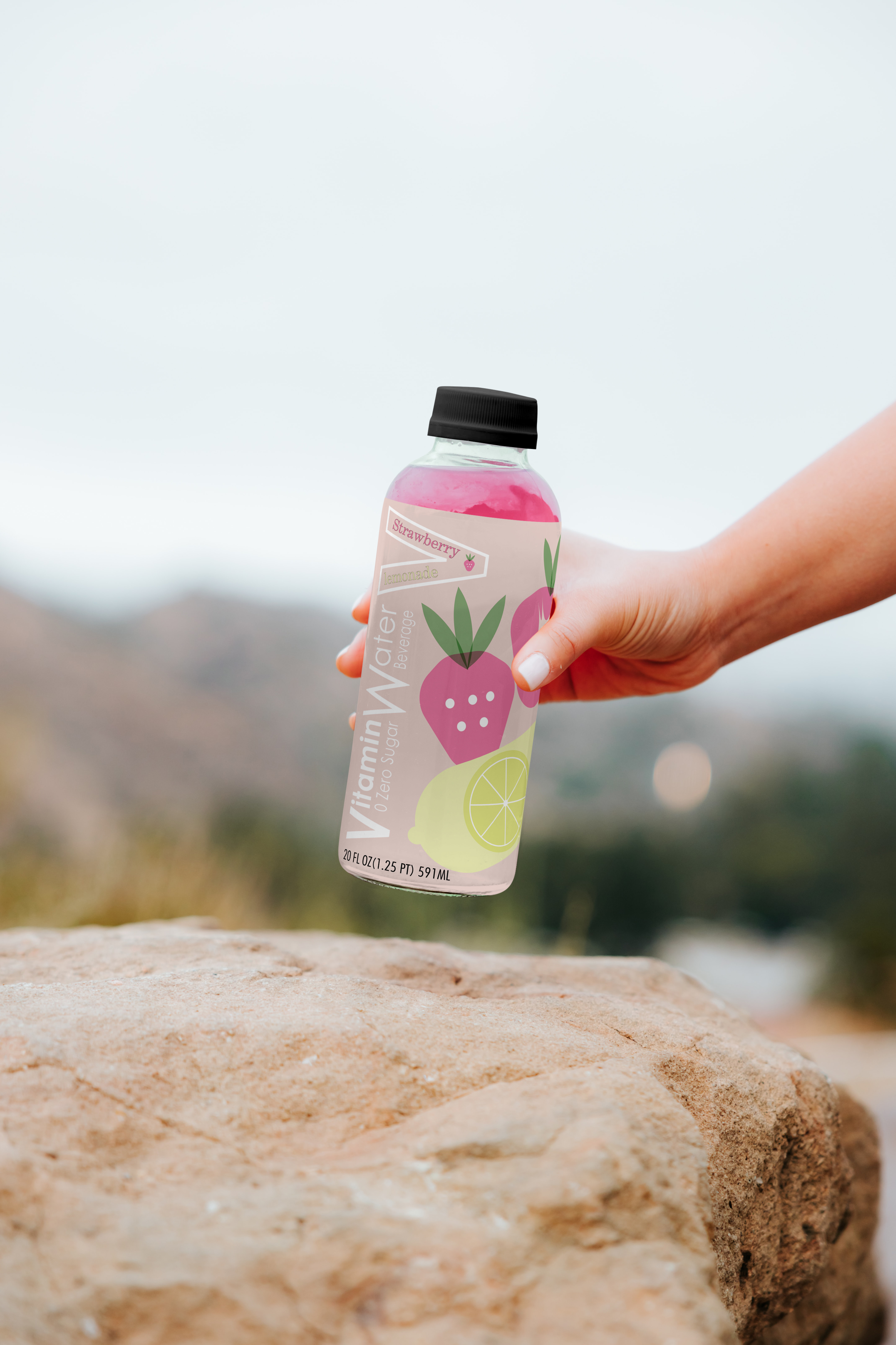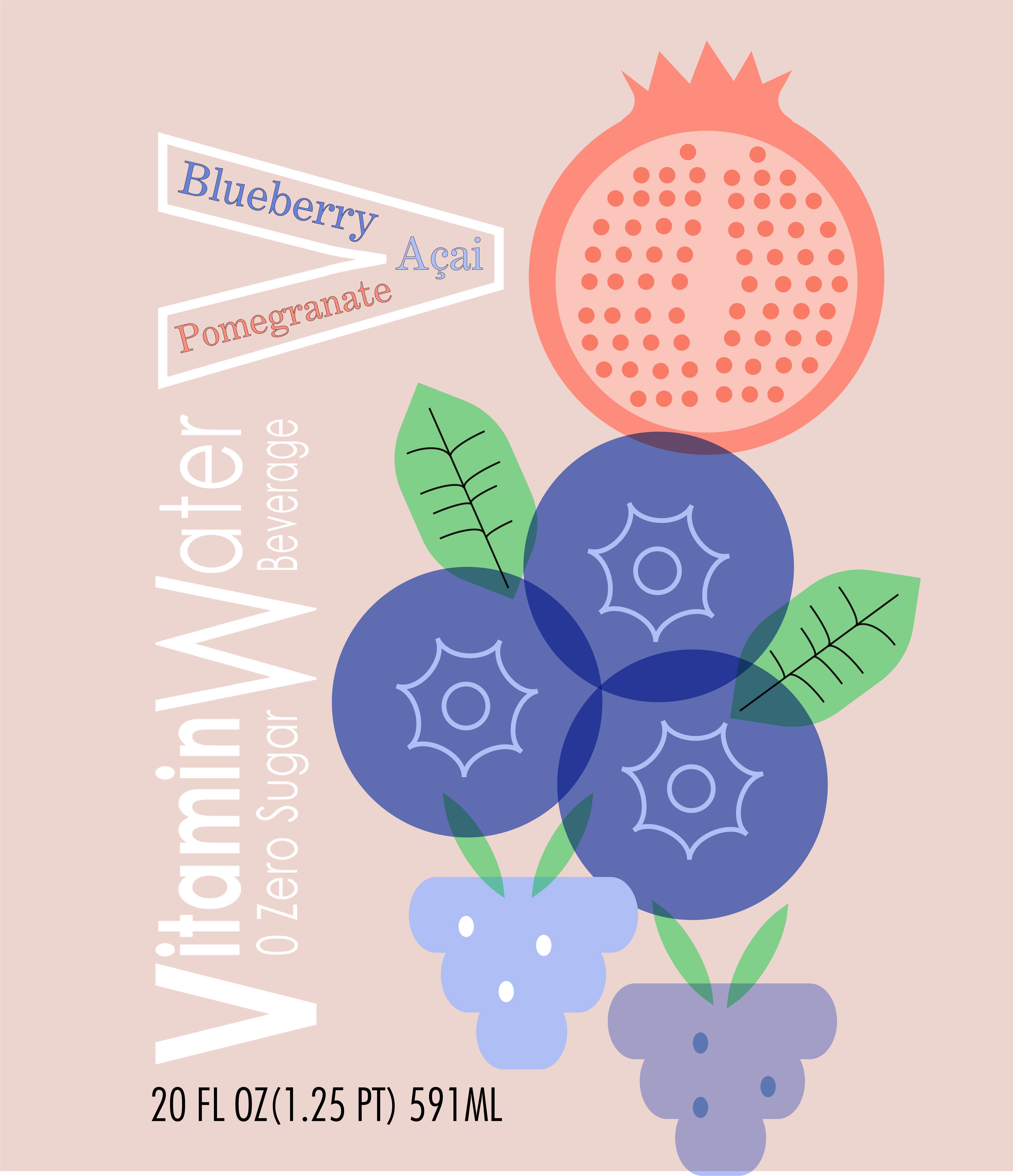 This project redesigned the packaging style for a vitamin beverage. The artwork features cartoon-style fruits, created using Illustrator, primarily showcasing a bright and vibrant style.